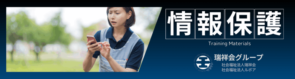 瑞祥会グループ(社会福祉法人瑞祥会・社会福祉法人ルボア)では利用者の皆様及び職員の個人情報を保護するため、以下のとおり「個人情報保護規程」を定めて遵守しております。職場における業務全般に関する個人情報とは以下の項目を指します。
