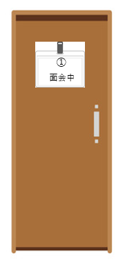 「面会用札」を必ず手に取り、お持ちください。面会中はこの札を、居室の入口扉上部にあるフックに吊るすことで、居室内で現在面会をしていることがわかるようにしてください。